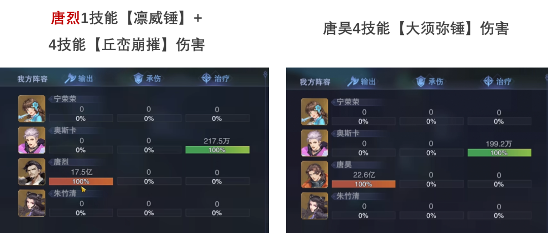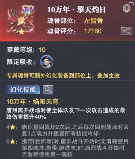这里先要提一句,唐烈的专属魂骨拥有在携带两个不同被动时可以在战斗开局自动释放1技能与4技能的效果,所以底下的一系列测试都会考虑到这个专属魂骨所带来的开局自动释放技能效果。