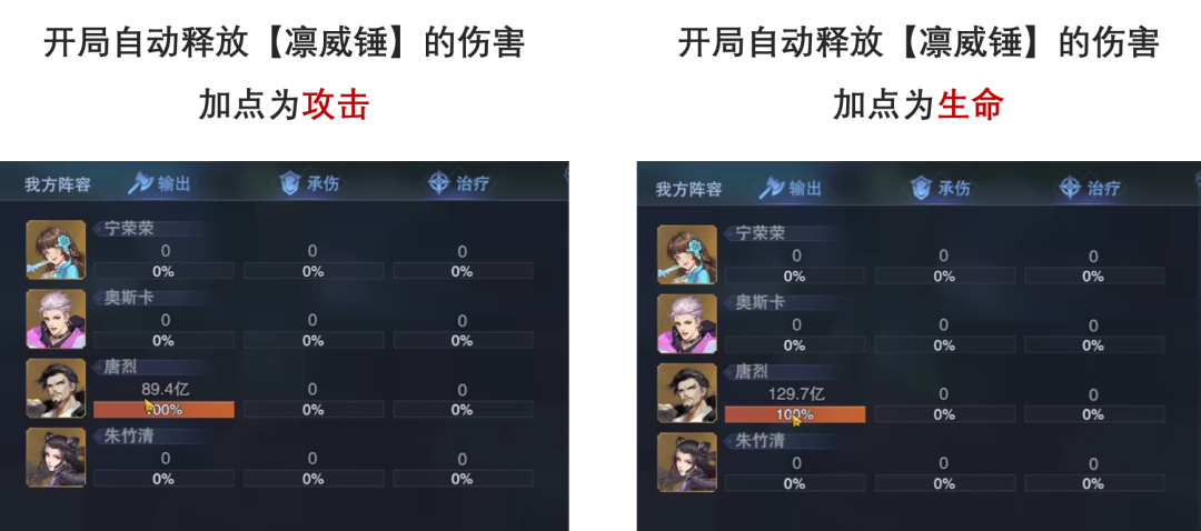 唐烈不断使用4-1技能和离场时,其在昊天锤状态下是可以为全队队友加攻的,但这样身上的【赐福】状态就很难保证唐烈不频繁使用4技能,只用1技能或普攻,则其身上的【赐福】状态可以保留,但却会确实离场后昊天锤的全场加攻效果
