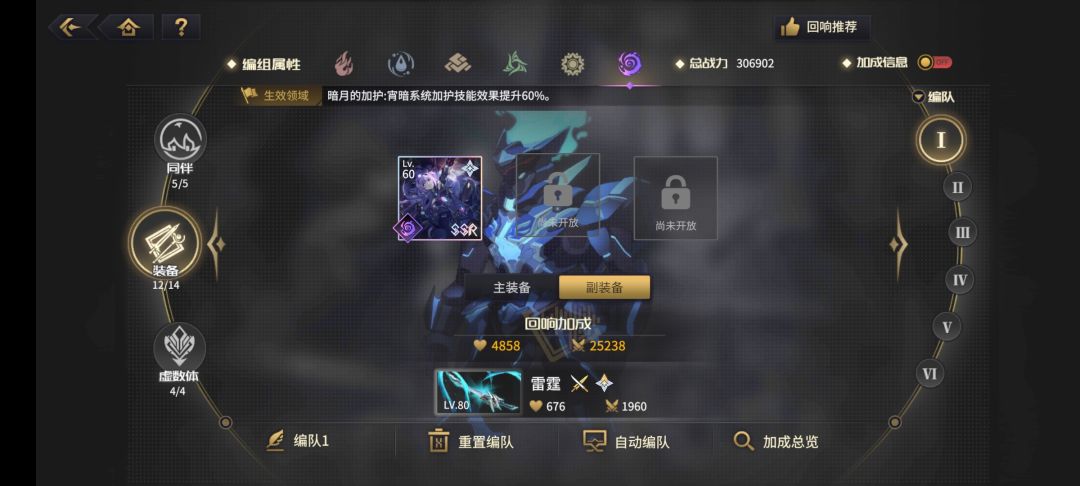 光队差不多49w战力了,现在搞暗队,不知道我的配队和回响是不是有问题,老感觉少个回复,站不住场,大佬们给点建议
