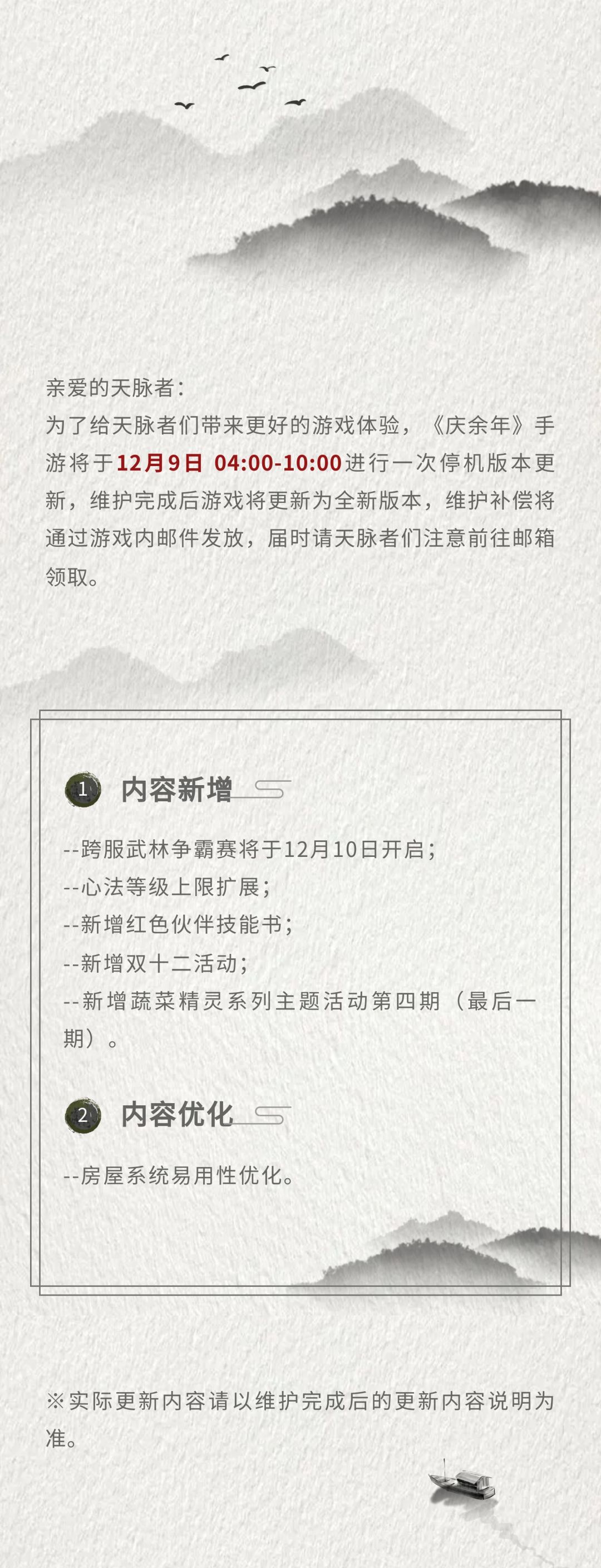 【公告】12月9日停机更新公告