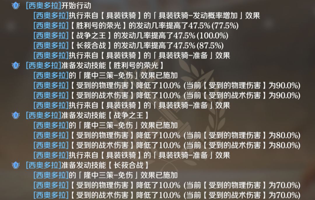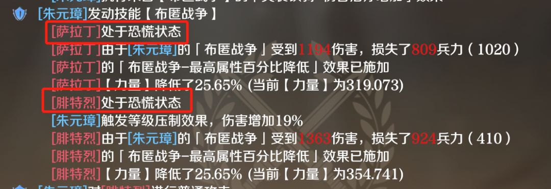 战报:从战报看出,即使面对突击白起队,英雄都跳过,隆中三策 的减伤依旧有效,可能防止第一回合被秒杀; 布匿战争 效果 是对方英雄处于恐慌状态 即可减百分比叠加以后的最高属性,也可以大量减少对方攻击。