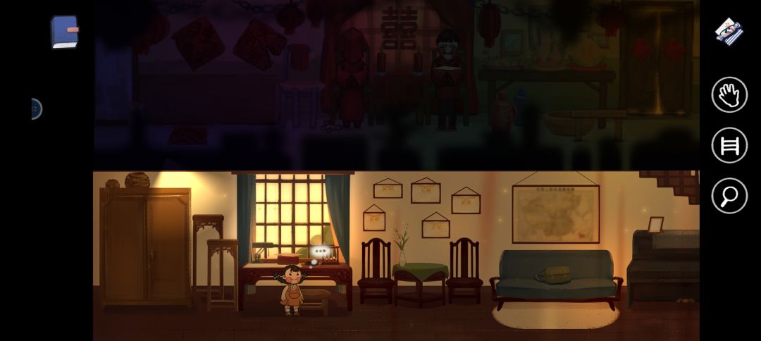 第一个图~首先爬案桌这里,放大镜看到奖状线索,然后爬右边绿桌子按线索给的一模一样摆好摆好~然后最右边钢琴摸一下,会发现亮光出现了!一层一层爬上去就下一张地图啦!