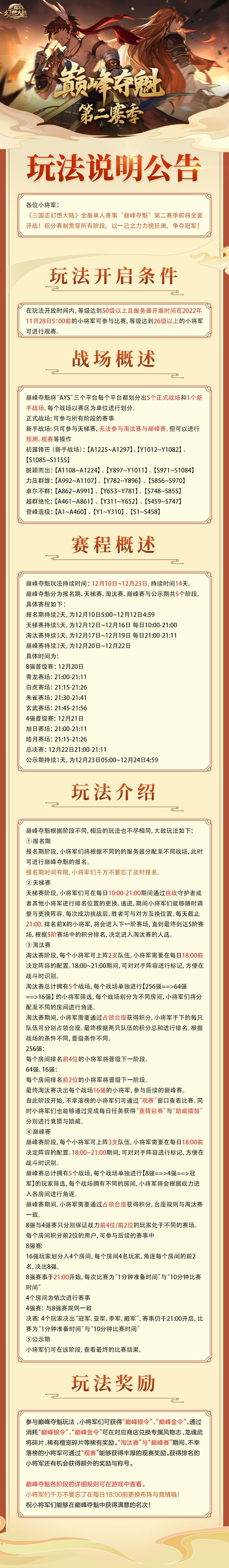玩法公告|巅峰夺魁第二赛季即将来袭!问鼎巅峰谁为魁首!