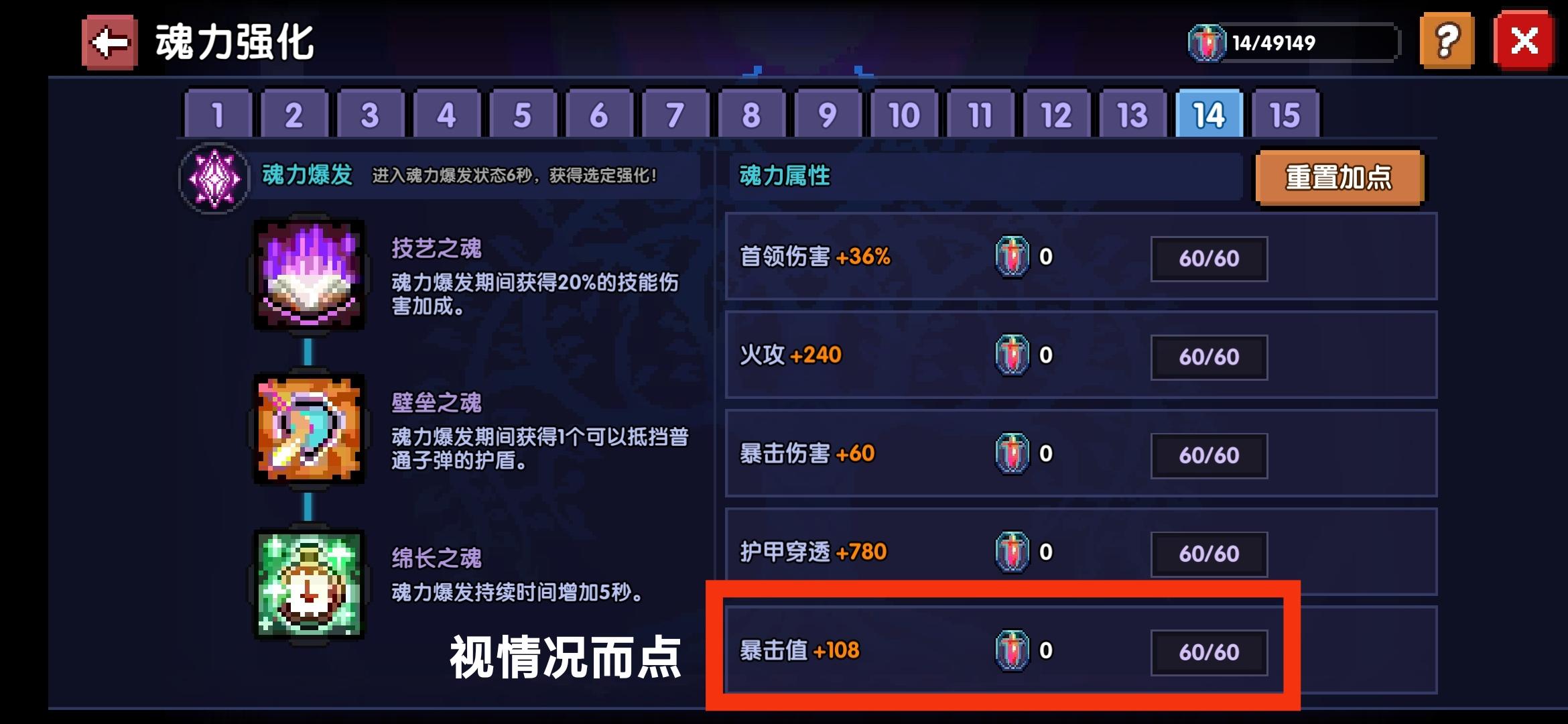 武器带单暴击值可在魂系把暴击值拉满(推荐),带双暴击值,不用再点暴击值,把点数留给其他属性
