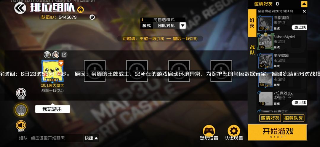 游戏环境启动异常是什么鬼,每次打完排位分享战绩然后切回来就玩不了排位了,刚开始是一天然后是一个星期,下一次是不是要一年?我有截图,我不知道是不是有其他玩家跟我一样,但是请你们尽快解决这个问题,QQ区和微信区都会,还有我没有开挂,莫名其妙不让我玩(1星卸载拜拜)