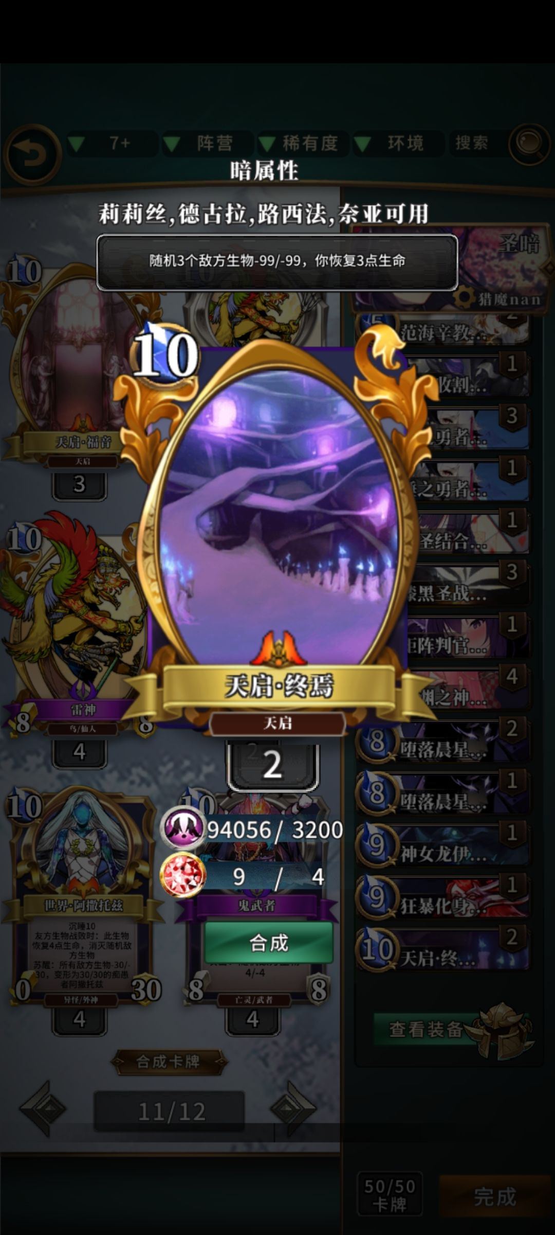 万年二苟神之一路西法猎魔人Max卡组: