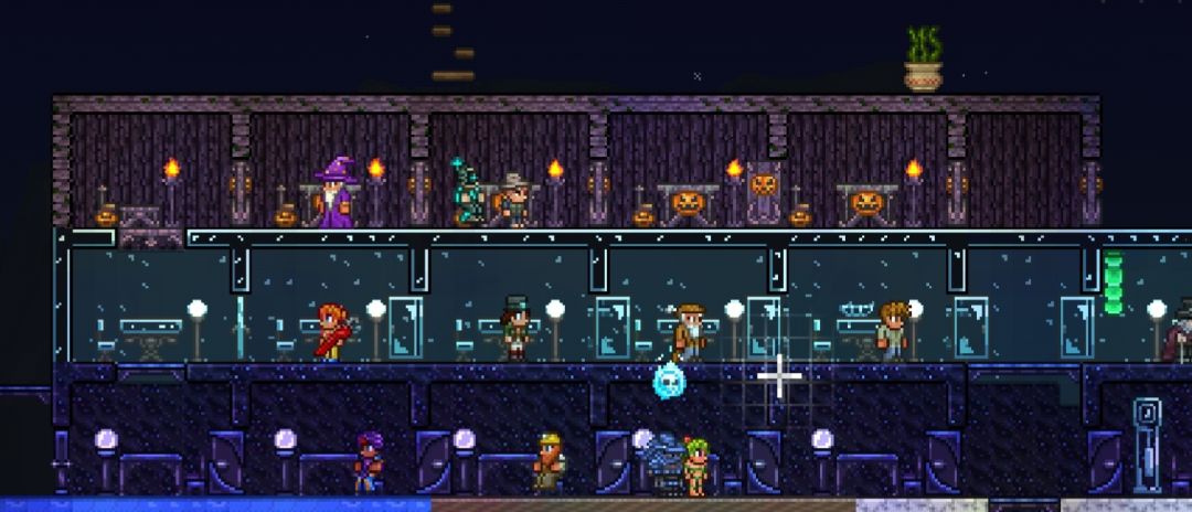 •在单人模式中,退出并重新进入游戏会使 NPC 回到自己的房屋。在夜晚,如果玩家移动到几个屏幕之外,或使用魔镜、传送机、或冰雪镜,NPC 们会自动进入他们的房屋中。