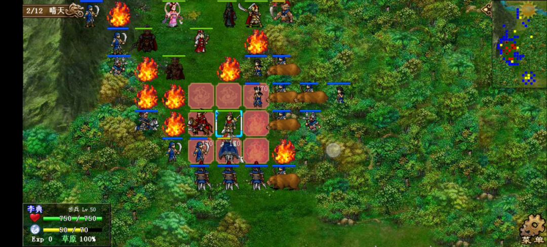 第四回合:张飞走到李典脸上了,那也就无需客气,貂蝉右移一步急救李典,李典连击两刀碰瓷张飞反至残血,荀彧一发火龙带走张飞,李典再连击碰瓷左侧的枪兵,大夏追击收掉,大夏再向前一格打残面前的枪兵,张辽右移一格风阵收下下方残血枪兵,再上移一格救队大夏,张郃二动杀刘封和自己面前的山贼,曹仁后退一格毒雾许褚上2格的熊,貂蝉到曹仁前方毒雾顶上的熊,许褚碰瓷上方的西凉,曹仁到貂蝉左侧急救奶许褚,荀彧风龙收割右下的敌军,神秘人继续往下跑