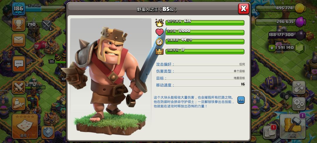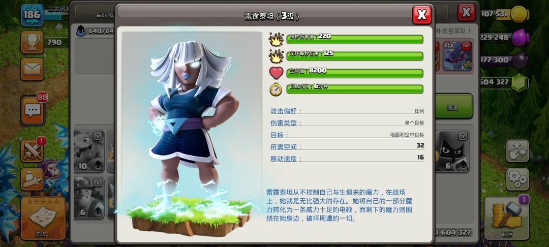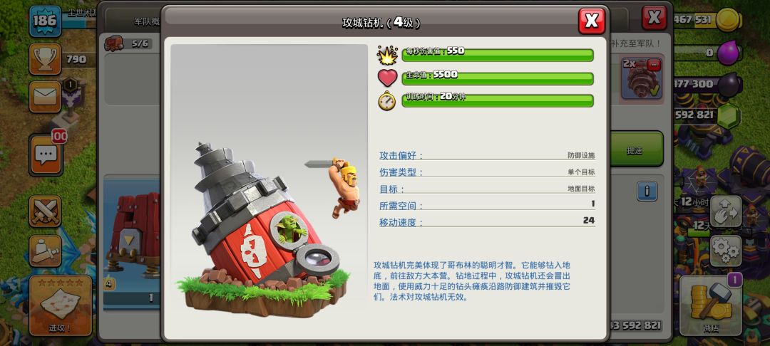 在十五本新增了一个新的角色和一个攻城机器,雷霆泰坦伤害很高血量更是离谱但是一个占32的空间还是比较大的,可以拿来当破墙或者清边的不二选择。新增的攻城钻机会钻入地下攻击附近的防御建筑,在地下时不会被其他建筑攻击,和掘地矿工是一样的。