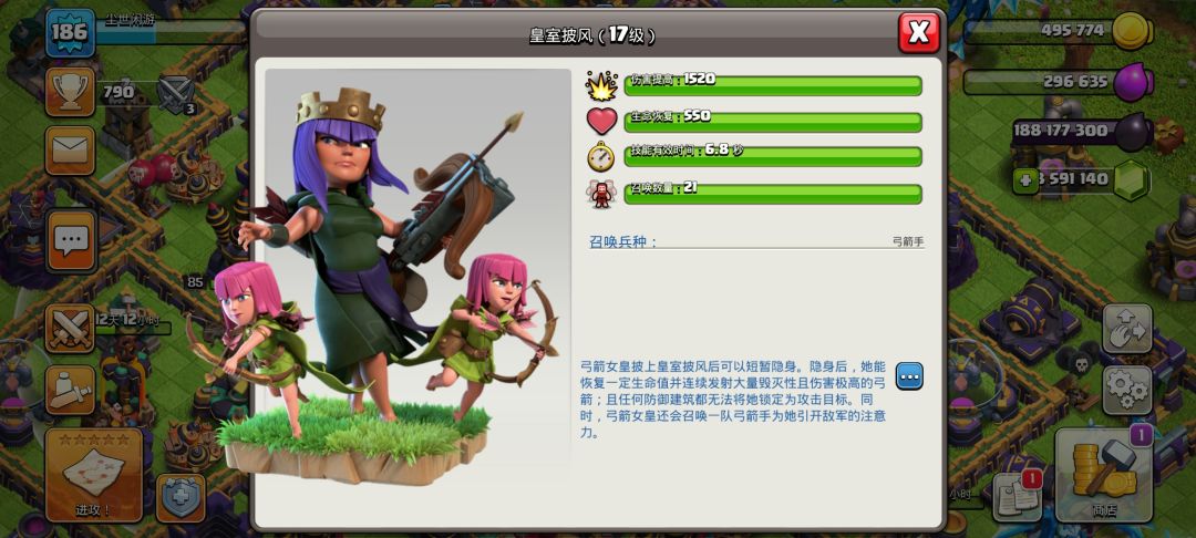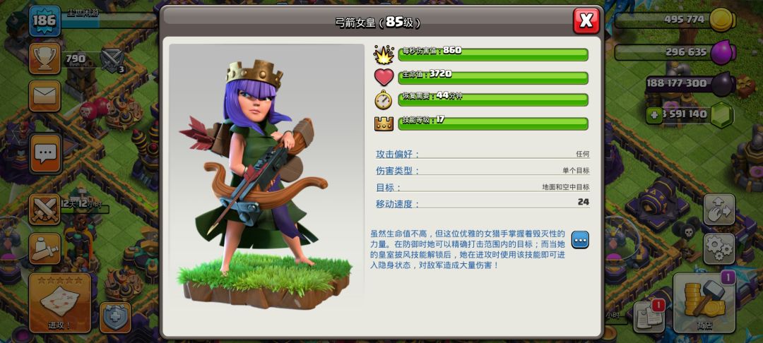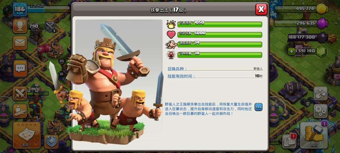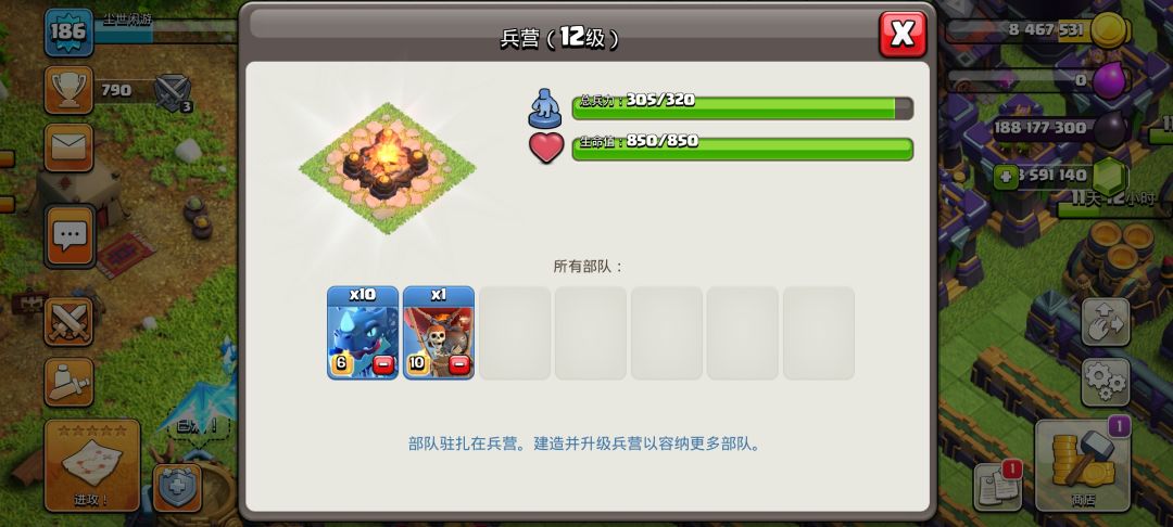 以上这些防御建筑可以在升级15本后多提升一级,个人不建议升级箭塔应为20级箭塔与21级箭塔只相差了5点伤害,而且20-21级花费的金币和时间也加长了不少,一个箭塔14天真心升不起。在15本实验室可以再升一级所以的兵种都可以再升高一级,并且训练营也迎来了新的兵种,想知道是谁吗?往下看待会就知道了。