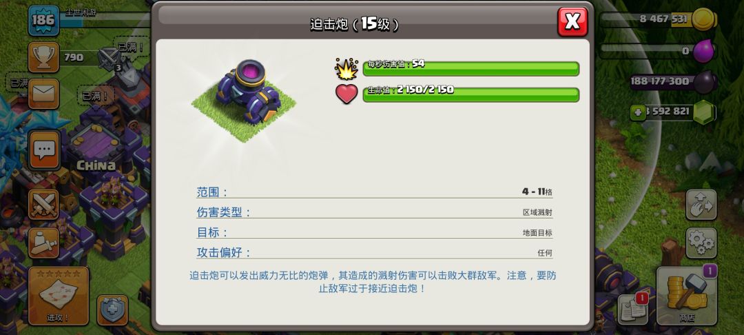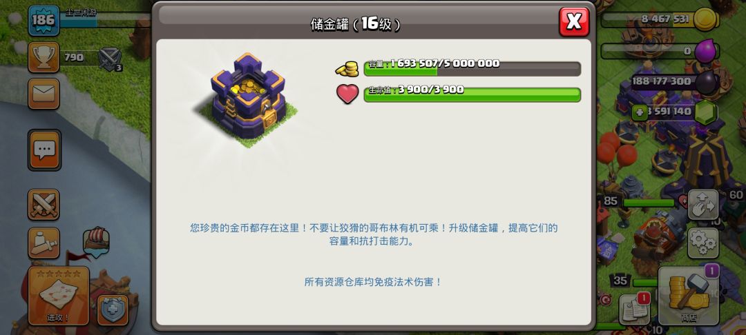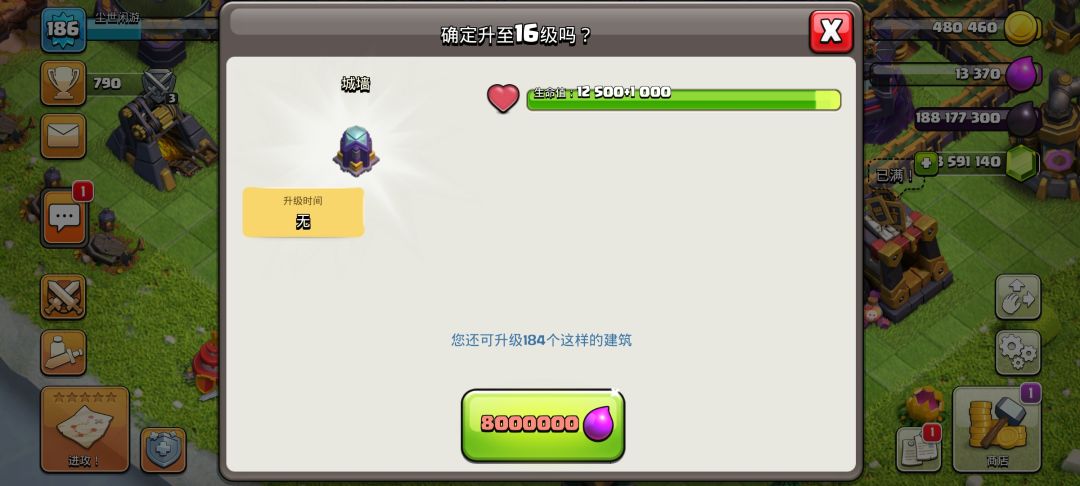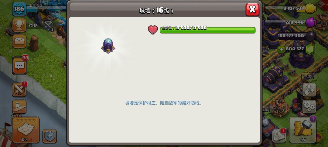 之后便是城墙,16级城墙相比15级城墙提高了1000点血量,而且造价也比较贵个人建议有钱有钱且没地方用的时候在升级。