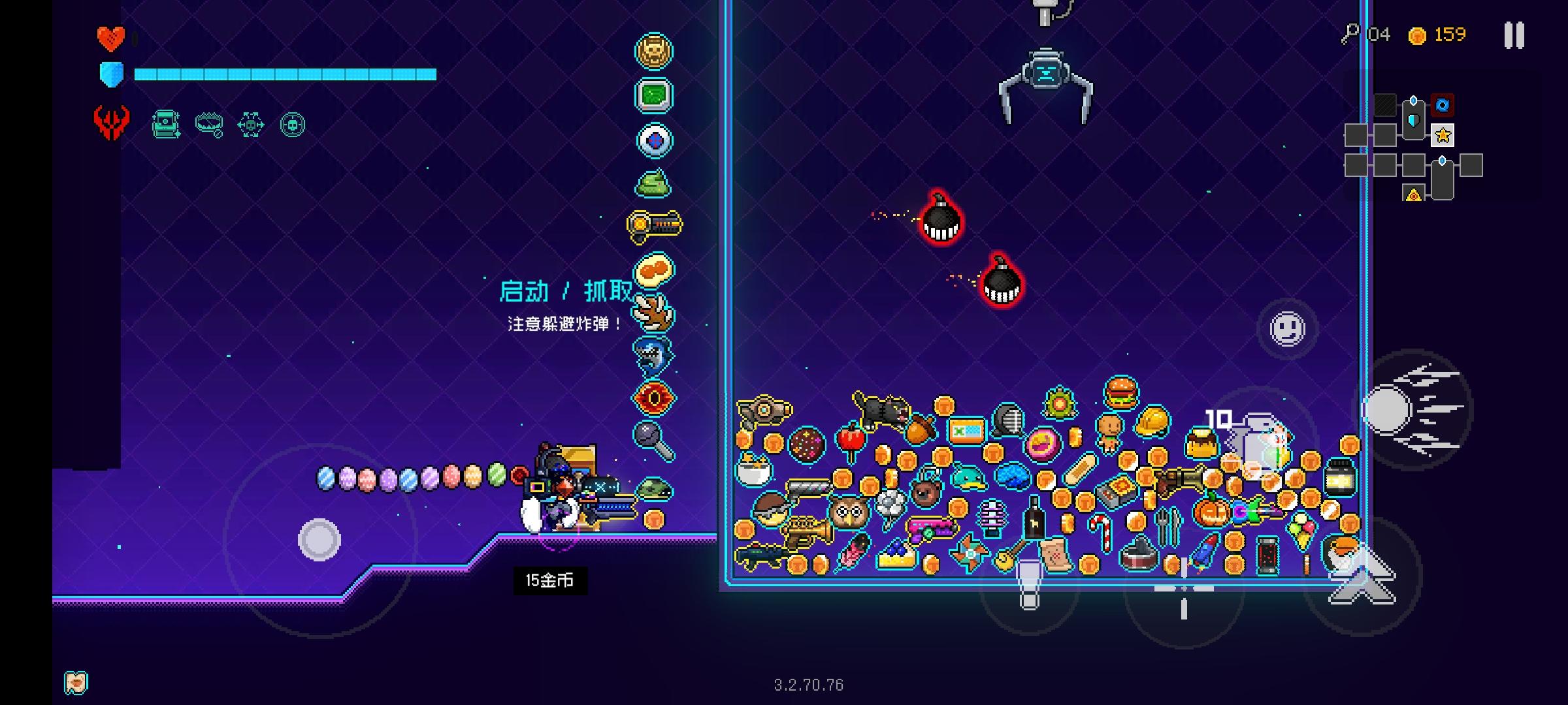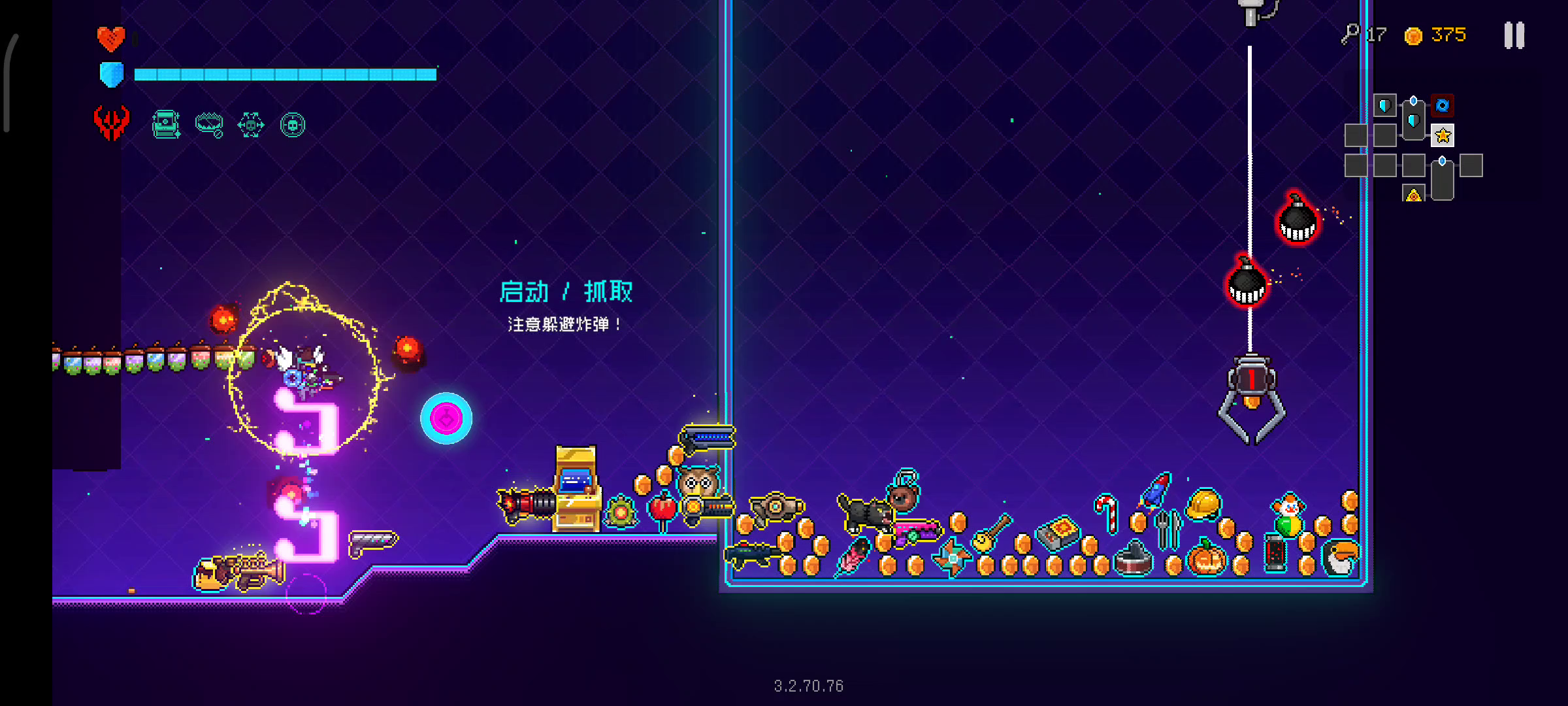很神奇,只要用彩虹攻击,就会触发抓娃娃机,而且不扣钱(我试了一下,在场的其他武器都不行),触发时间不定,有时候很快触发,有时候要过个几秒