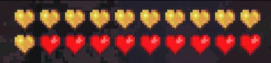 •所有的角色都以 100 点血量(即 5 个心)开始并可以通过生命水晶(红色)上升至 400 点,然后后期通过生命果(金色)进一步提升到 500 点。