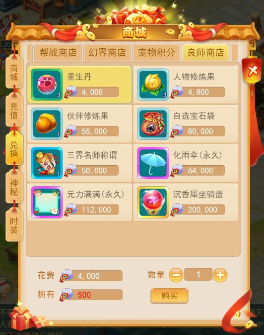 “良师积分”可在商城的“良师商店”兑换到宝石、重生丹等物品除此之外,还有一些特殊的道具哦
