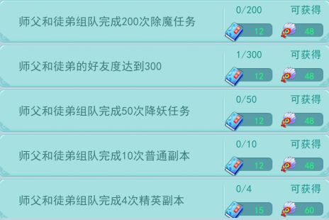 除了升级任务外还有组队奖励,完成不同的副本/挑战师徒,双方也同样能获得“师徒值”和“良师积分”奖励