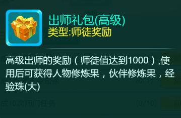 待徒弟出师后,系统还会对师徒值会做一个结算,根据结算的师徒值高低,徒弟会得到不同等级的出师礼包,而师父则会得到不同等级的良师积分
