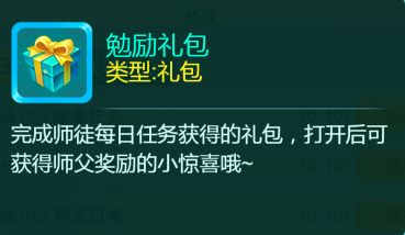 徒弟完成任务后,还能获得师父奖励的小礼包哦~
