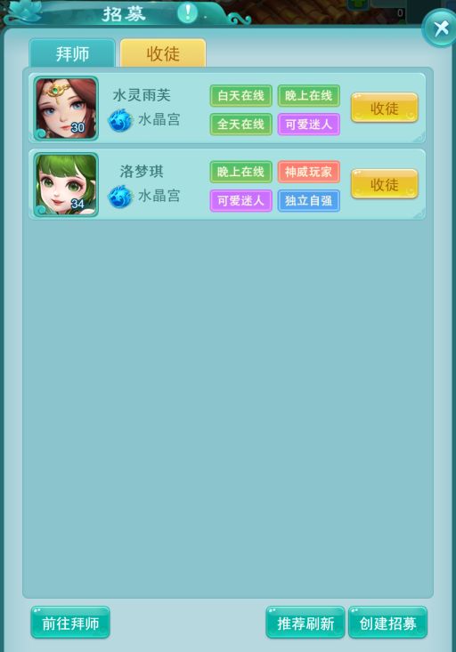各位可根据自己的需求在“招募”处选择师父/徒弟