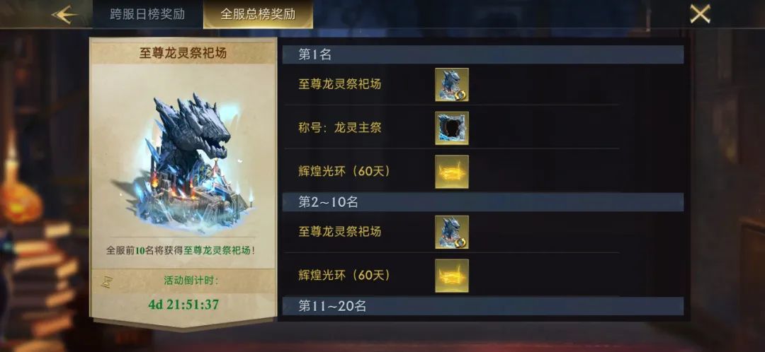 获得全服总榜前30的领主,均可获得增益范围8X8的限时高级光环道具【辉煌光环(60天)】。