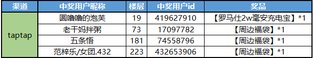 我们将抽取1位顾问送出【罗马仕2w毫安充电宝】*1,抽取3位顾问们分别送出【周边福袋】*1![[嗒啦啦4_好耶]](https://img.tapimg.com/market/images/d378b7a8f38cae2d3dfb6170d918238b.gif)