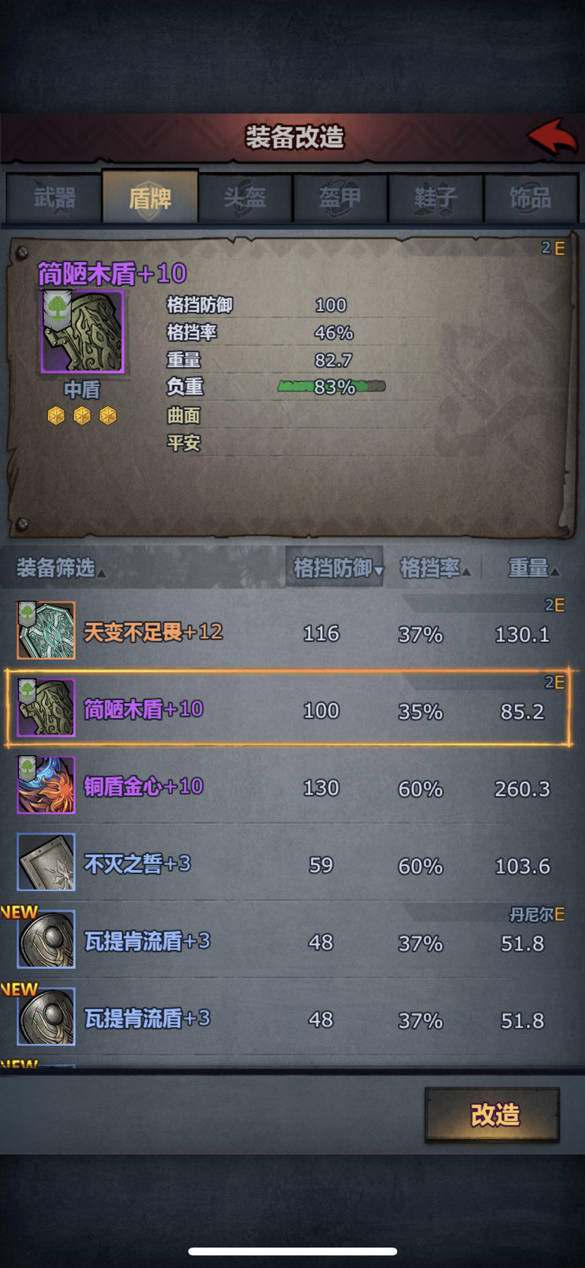 中盾双减重曲面,大盾双增重精密