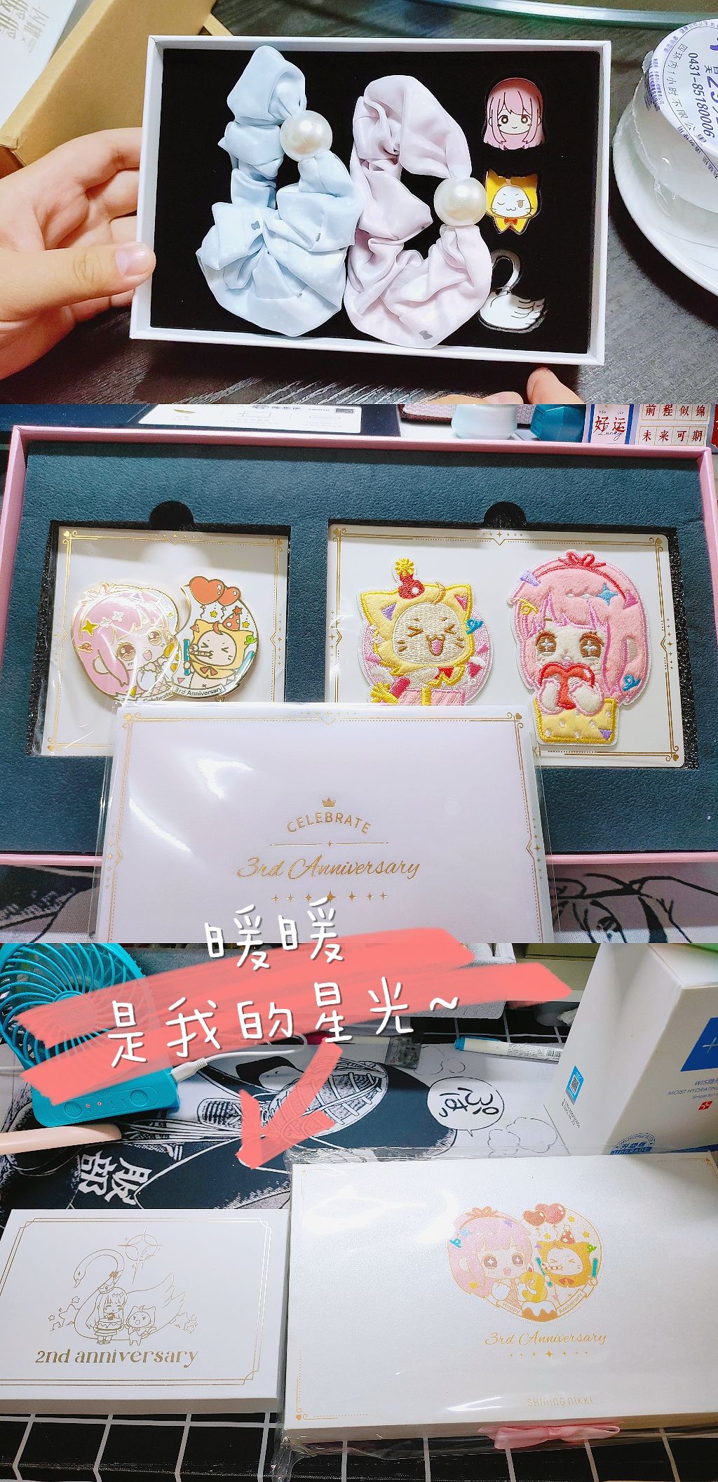 祝暖暖生日快乐!!!!一晃也有九年了!我都上大学了!生活中或许很多不如意,但是总有暖暖陪我走下去。暖暖不要怕,不管轮回多少次,我会一直一直陪在你身边的!虽然升高中的时候换手机了,但是还是下了环暖和奇暖重新玩。闪暖也是,从第一个pv就开始守着。我也算奇暖和闪暖的开服玩家,以后也要是暖5的开服玩家! 二周年三周年的周边,暖暖有关的时尚年鉴,画册,还有奇暖的设定册我今年都买了,只是设定册是高中买的,没有拍照,这几本我放在大学宿舍里了没有带回家。收到时尚年鉴的那天,是运气超好的一天!阳光明媚,北方秋天金黄的叶子飘了一地。大概是暖暖带来的好运吧!欲望之音是去年生日那天抽到的。是我最好的生日礼物!从小学一直玩到大学。只要我有空就会一直陪伴暖暖。也是暖暖陪伴我!希望以后可以陪暖暖在奇迹大陆上遨游!