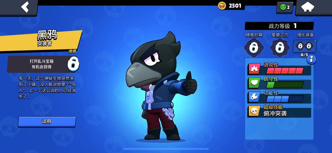斯派克在荒野乱斗中小编认为他是一个近战克星,瞬间爆发很高,他的攻击效果也很特别,仙人掌球炸开后能碰到特别远的距离,也可以从各种烦刁钻的角度去骚扰敌人,再加上他非常强力的团战大招,斯派克可以在大部分的散人模式以及吃鸡模式中出场,而且泛用性非常好,斯派克一是他的妙具效果很普通,二是他的血条非常短,攻击的弹速也比较慢,所以你在空旷的地图上面对佩佩一类的狙击手会很难打,在墙多的地图上面对巴利一类的投手英雄也会有点吃力,他不但血少,除了大招也没有别的防御技能,但是不影响斯派克在荒野传奇英雄中的地位!二:黑鸦