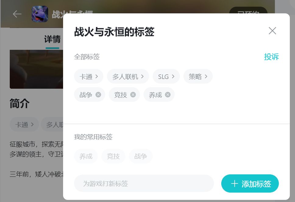 最近海伦注意到《战火与永恒》的游戏标签只有4个,但是其他很多游戏都有5个、6个……甚至12个,海伦很羡慕,海伦也想要拥有更多标签!
