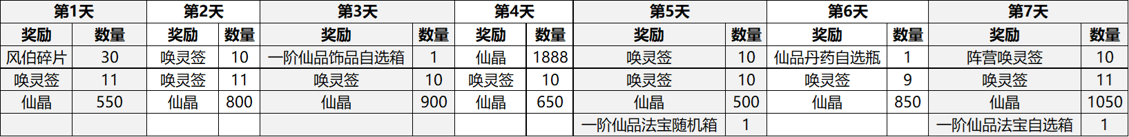 七日任务奖励汇总