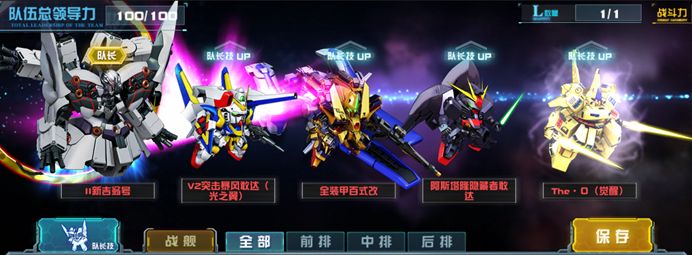 这是在没有典藏机体完美独角兽敢达情况下比较推荐的组队方式,II新吉翁号上场,替换下NT敢达A装备,队长由老将独角兽敢达(NT-D)担任。