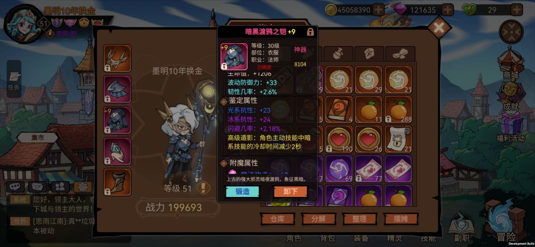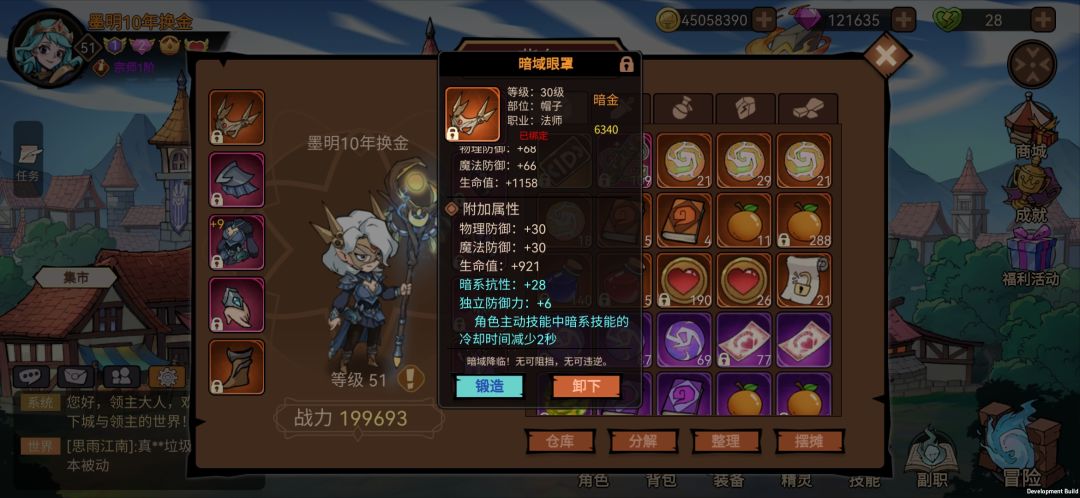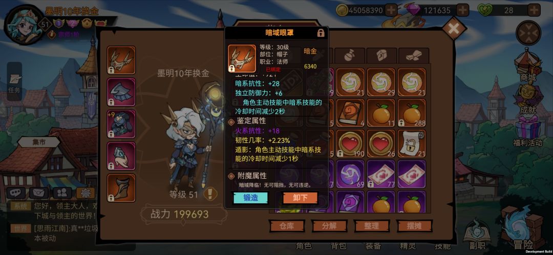 3. 等级达到30级就可以刷装备词条了,可以30级用到满级的装备。这里注意一下30级帽子。(一定要收到,减2秒暗系cd)
