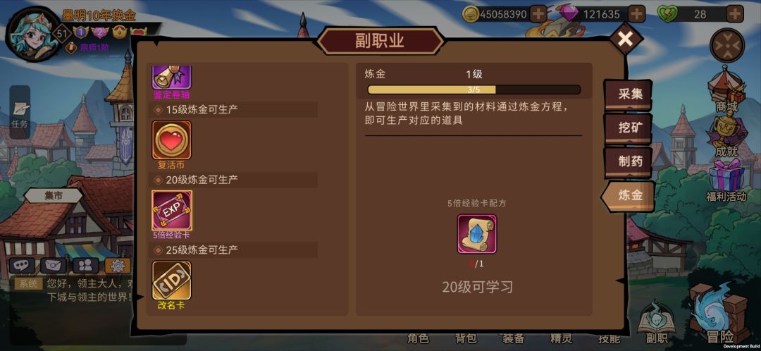 2.不删档了一定要每个图采药,后面炼金制作经验卡(拉开等级差距的来源)