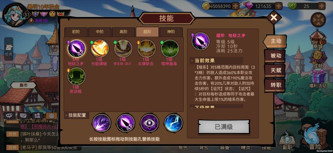 2:前期闷头刷图收技能,只收满地狱之矛就够玩通关了(有条件收个3级神级刷图方便)