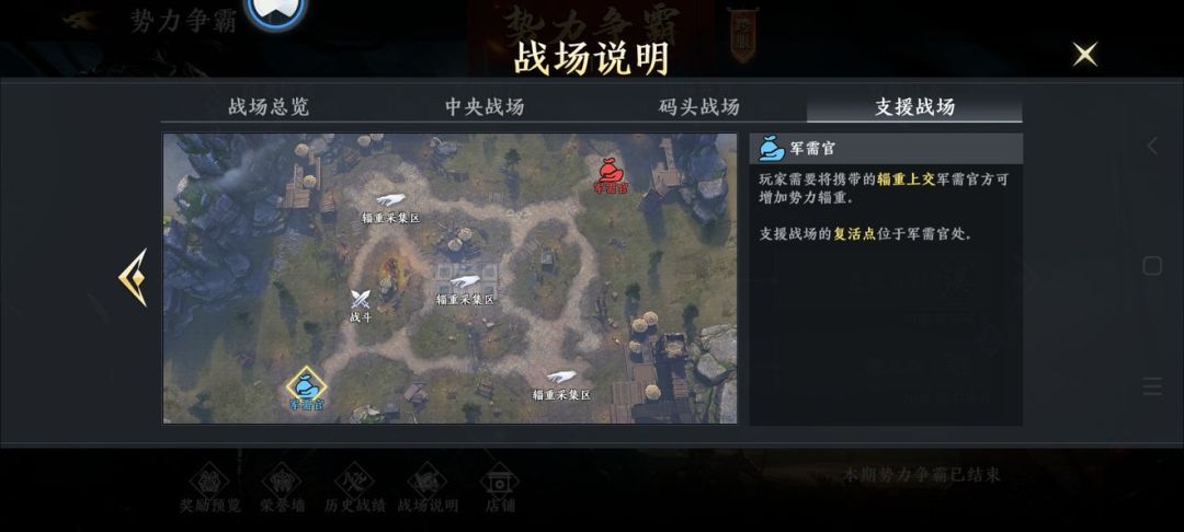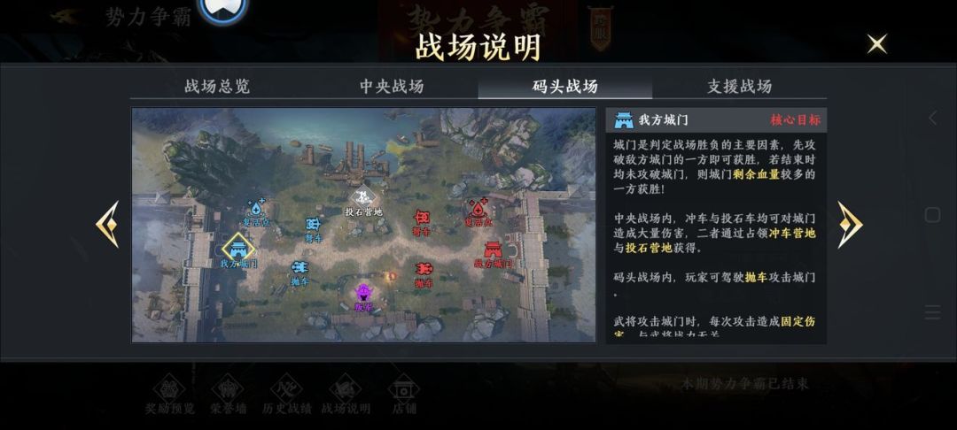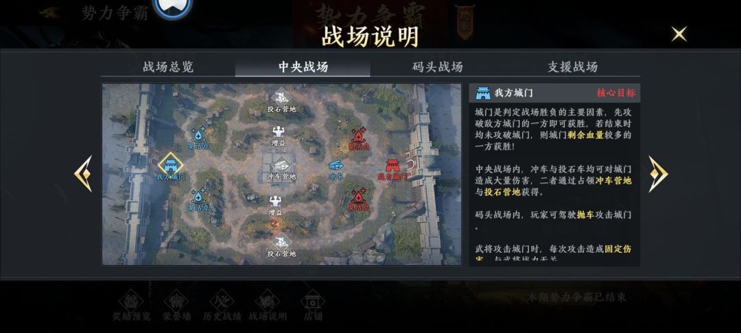 势力争霸主要分为中央、码头、支援三个战场,每个战场都有不同的作用,其中以中央战场最为关键。