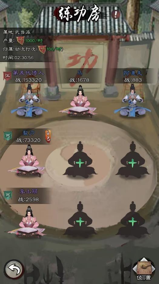 当占领江湖门派后每隔一段时间,会在已开放的门派领地附近刷新事件,一共练功房、铸币房、炼药房有三个随机事件,每次只会刷新出一个类型,当少主占领事件房间内的坑位后,可以在该城镇的事件房内挂机获取相应收益。