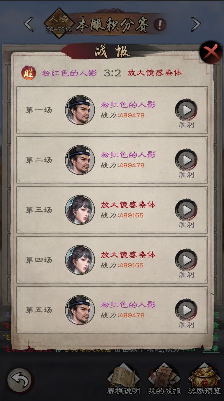 有了神兵利器加持,少主们一定跃跃欲试想要与天下英雄论高低,不知上周的武林大会少主们是否占得一席之地,即使出师不利也不用太过在意,毕竟胜负乃兵家常事,这回我们增加了战报回放功能,如果在切磋比试中折戟沉沙,也能好好复盘寻找一下失利的原因了,下次我们再有针对性地进行阵容和功法神兵的调整。