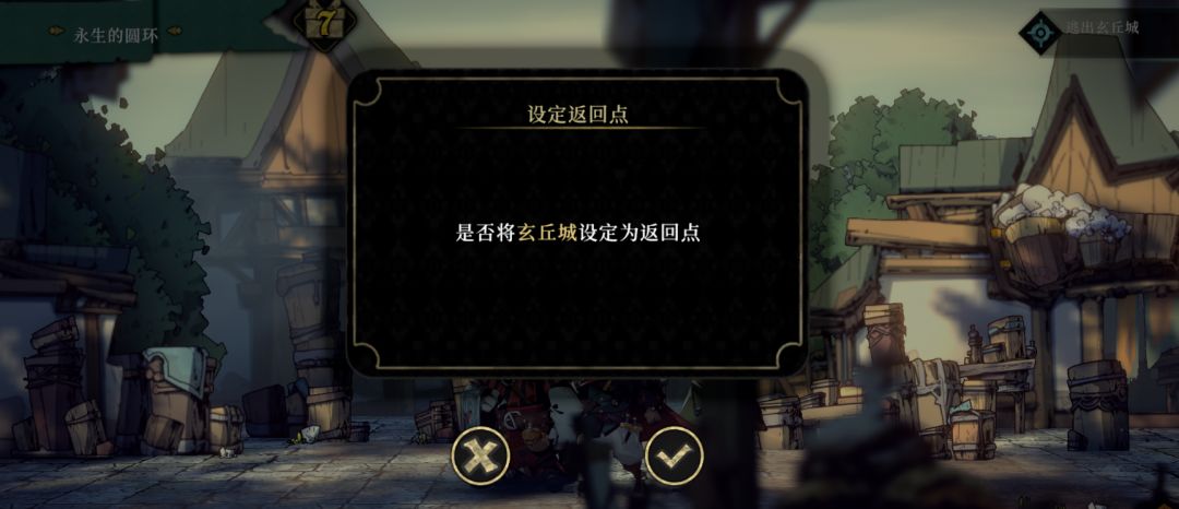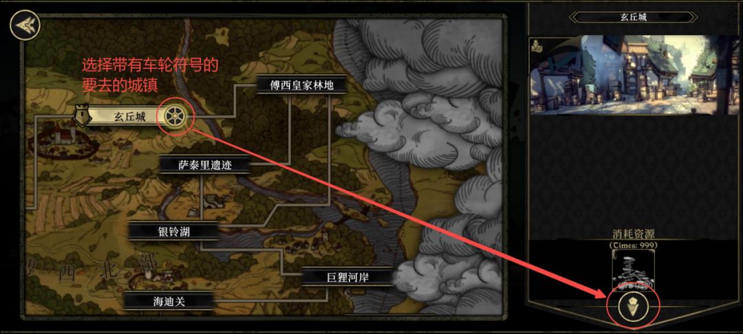 在【玄丘城】时,记得去找【猫寮】,将玄丘城设定为返回点。