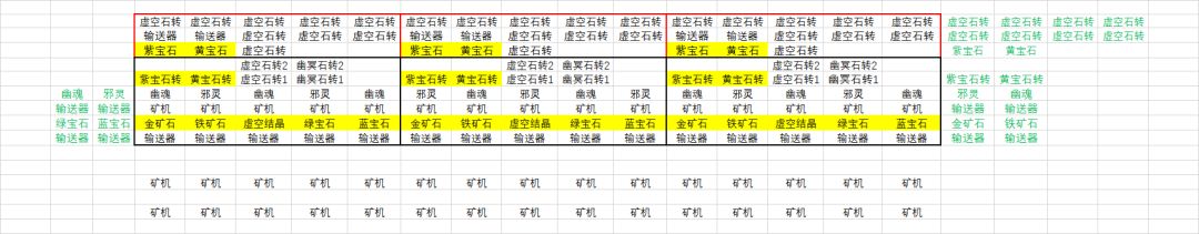 收取紫宝石,黄宝石,虚空石,理论2.4万回合后两个虚空石中转箱满,但幽冥石中转箱还是可以消耗多余的魔能,只会有虚空石开始在矿机内堆积,4.2万回合后堆满矿机,实在超了也没事,只要矿机不爆满机组还在运行,收走中转箱内虚空石,矿机内的虚空石也会被快速转移到中转箱