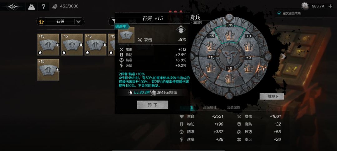 留带有命中的石哭是为了让你在凹石咒的时候随随便便都能穿出4套6石哭 并且全带有精准(小知识 6个相同铭文是可以再次触发两件套的特效)