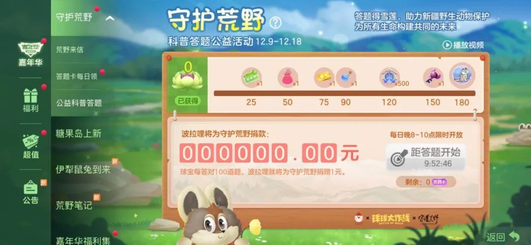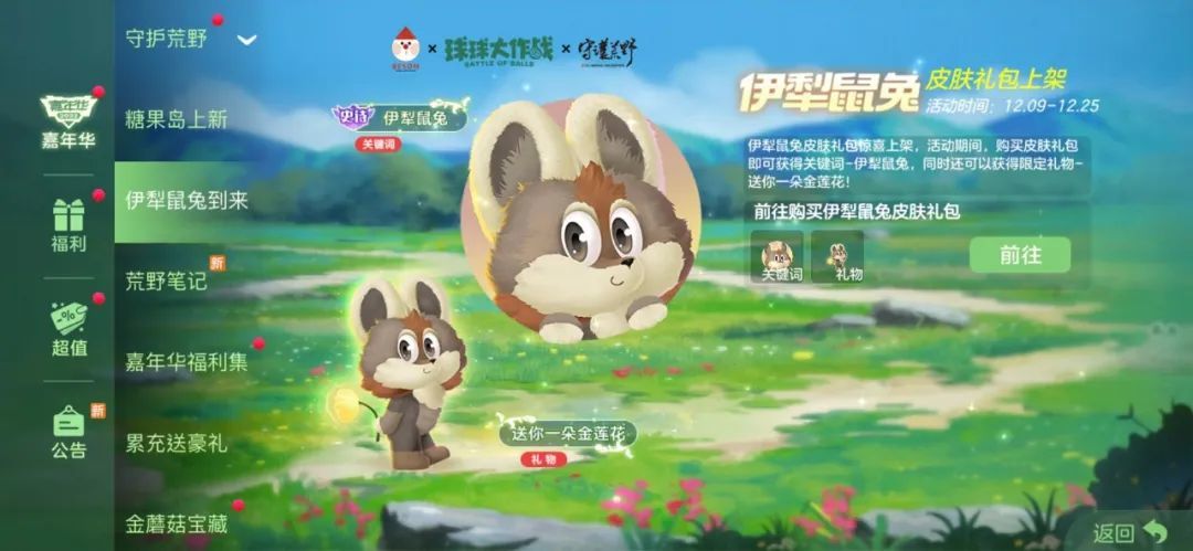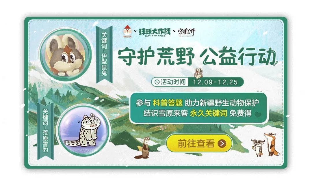 守护荒野公益活动今天正式开始啦,球宝们不仅能在游戏内获得由知名插画家伟大的扫把设计、李维东老师和守护荒野公益平台联合推出的伊犁鼠兔皮肤,参与科普公益答题活动还能为保护自然献上一份爱心。