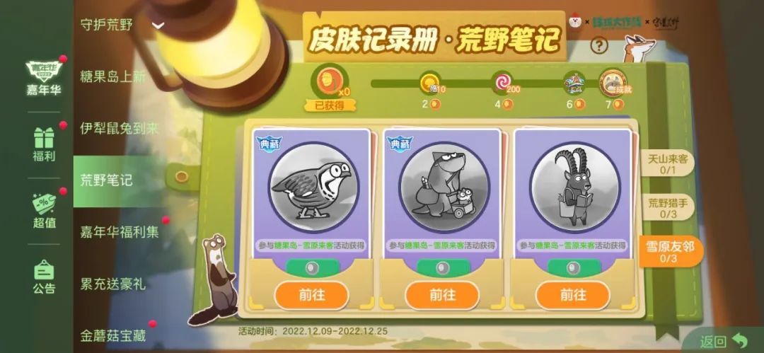 参与守护荒野公益活动,获得对应皮肤点亮记录册,解锁专属成就-荒野守护者。