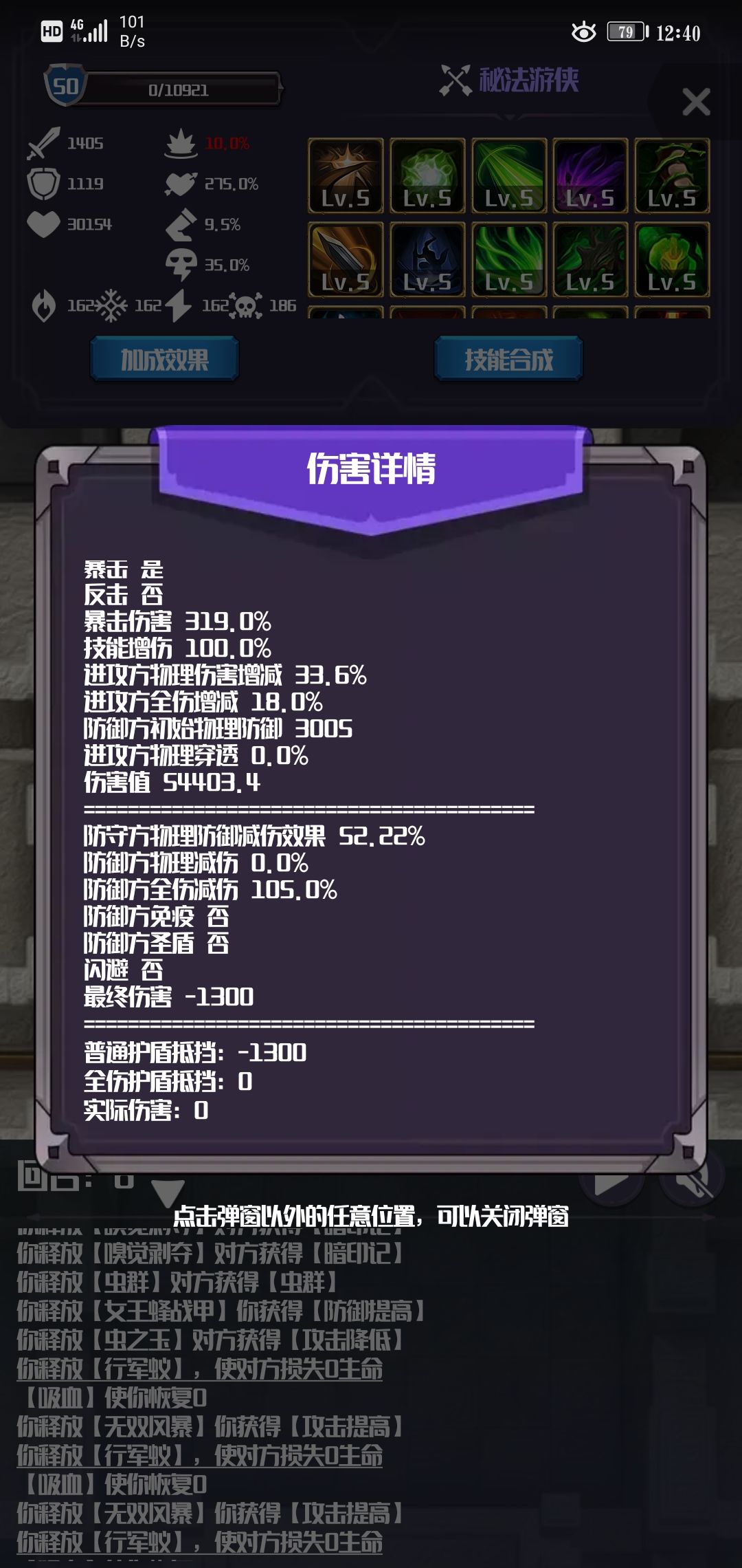 有点奇怪的是输出下方的普通和全伤护盾抵挡,昨天的抵挡为0,今天的看到的都抵挡清0了