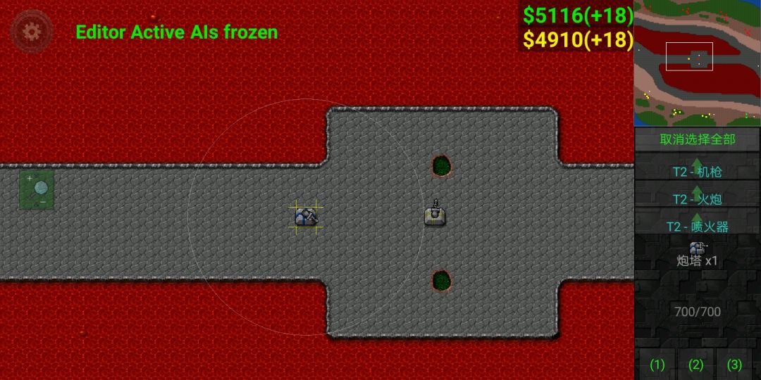 使用激光坦克(图片情况是假的),因沙盒模式原因很难模拟正常情况,因为钱不够的原因四号要出激光坦克在激光防御上有极大欠缺,三号只需火炮集火激光坦克,并用建造修塔,而四号的激光坦克难有输出机会大概率白给,为减小损失回收二级陆工,三号顺利拿下中。以上为我遇到的对抗火炮的方法,均以失败告终,目前尚未遇到能对付的方法(好像只有我一个人用,那就叫雪风式火炮流好了)