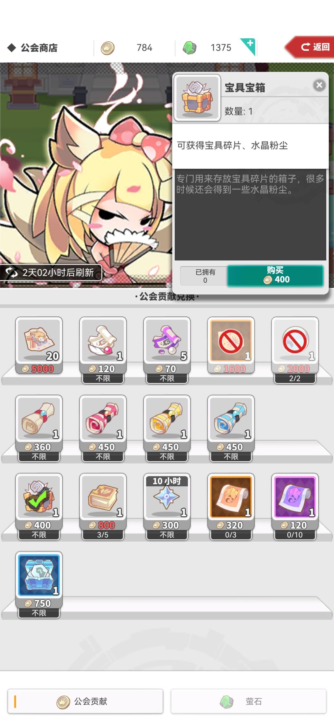 1宝具宝箱,开箱子可以固定获取三个蓝色粉尘以及随机完整宝具或者是宝具碎片,橙色宝具也包括在内哦,而宝具宝箱则可以通过工会商店,余烬商店,挂机等渠道获取