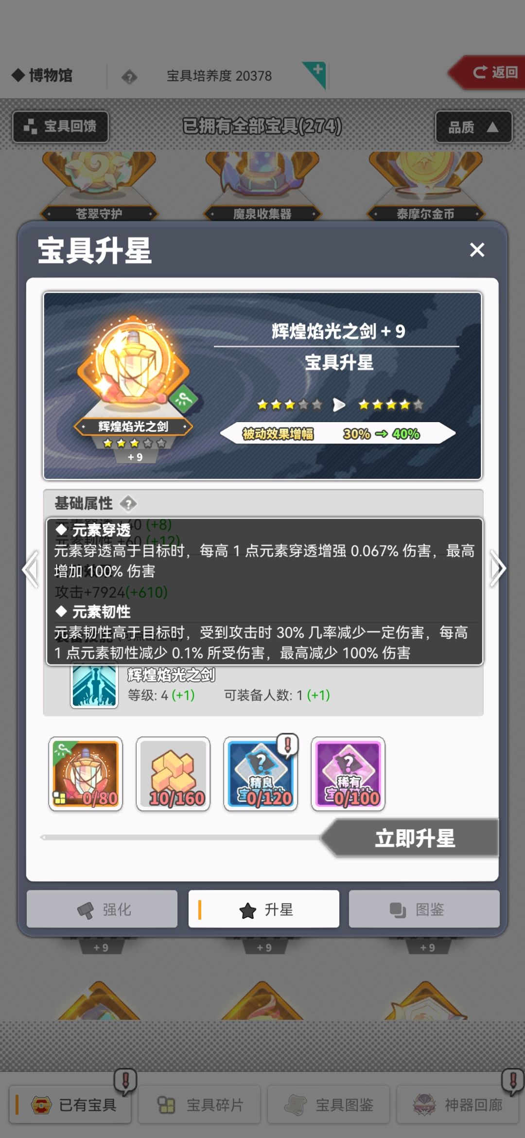 宝具对使魔的战力提升非常巨大,不要觉得单个就提升几十上百点,但他数量在这儿呢,且所有宝具皆还能给使魔提供目前游戏中最为稀有的两种属性:元素韧性以及元素穿透
