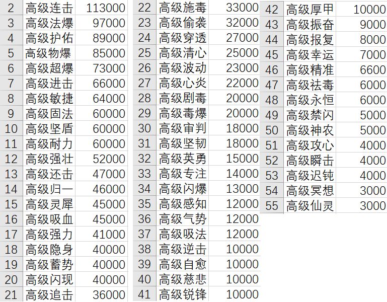 高级坚盾 高级耐力 高级强壮 高级归一 高级护佑 高级吸血 高级坚韧 高级吸法 高级幸运
