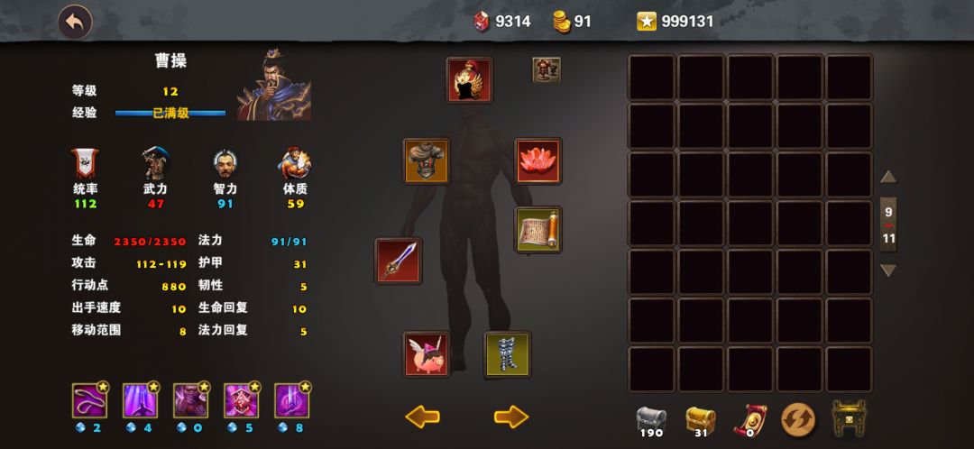 曹操:倚天剑(雌雄剑)、百胜甲、紫金头、九色鹿、吴子、和氏璧(五色石)