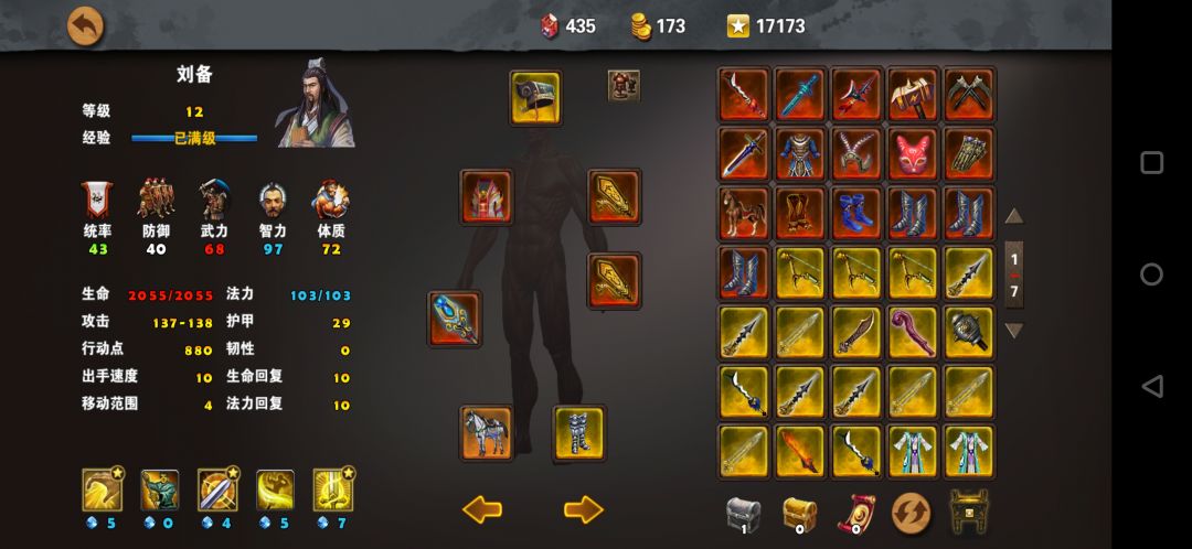通常情况下第一套装备就可以适用90%的副本如果队友输出给力甚至都不用上五色石,刘备这一套装备有减敌方速度还可以给队友加移动范围