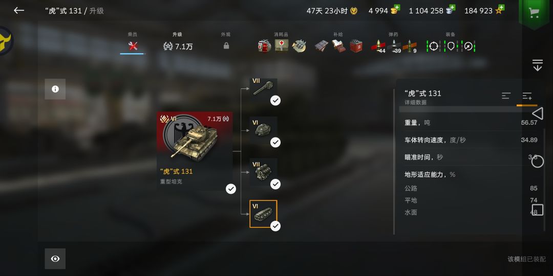 40的极速平常只能38的速度前进,推重比可以使131在10秒内跟上重坦一线(131起步速度太难受了)。