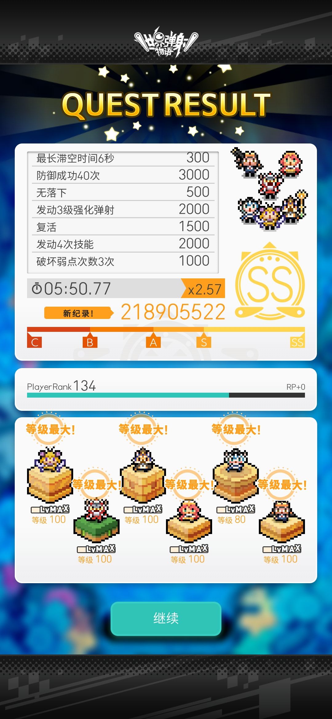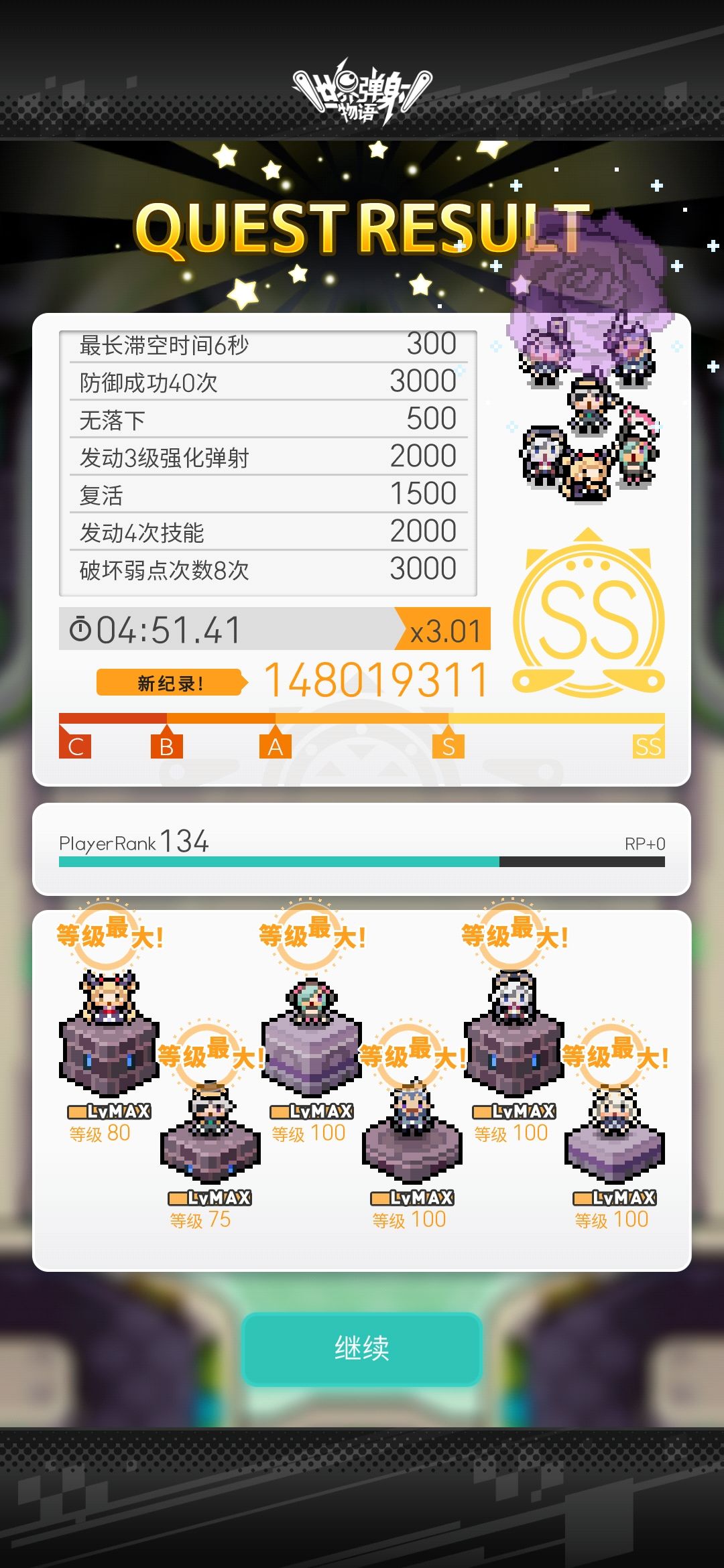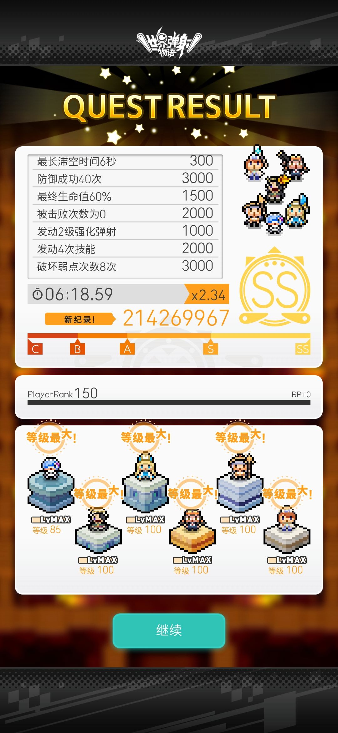 不过这个盘子六板就越多越好了,通关的时候也是全员只点了大雕像,虽然我这局抗住了两次破弱失败,不过这也到s的边缘了,六板越高的话成绩应该会越好